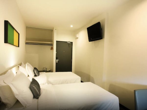 It features 2 Super Single Bed with attached bathroom, dedicated work desk with coffee making facilities, and a flat screen TV.