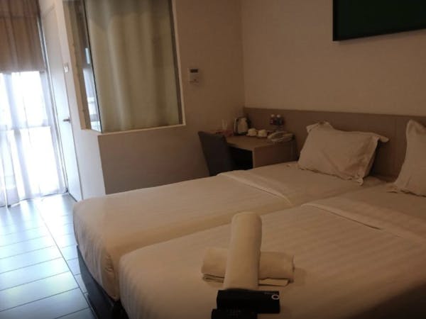 It feature 2 Single Bed with attached bathroom, dedicated work desk with coffee making facilities, and a flat screen TV.
