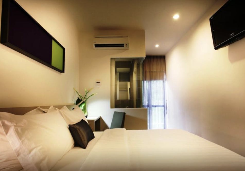 It feature a Queen-sized Bed with attached bathroom, dedicated work desk with coffee making facilities, and a flat screen TV.
